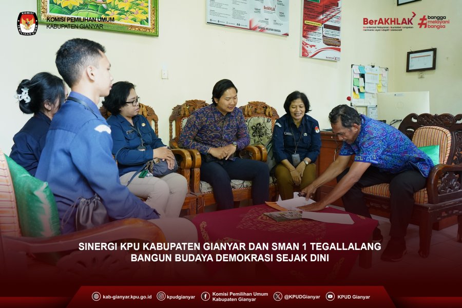 Upaya menanamkan kesadaran demokrasi sejak usia sekolah terus dilakukan KPU Kabupaten Gianyar. Salah satunya yaitu melalui penjajakan kerja sama dengan SMA Negeri 1 Tegallalang yang berlangsung pada Selasa (10/2/2026). Audiensi diterima langsung oleh Kepala Sekolah, Drs. I Gusti Made Mertanadi.