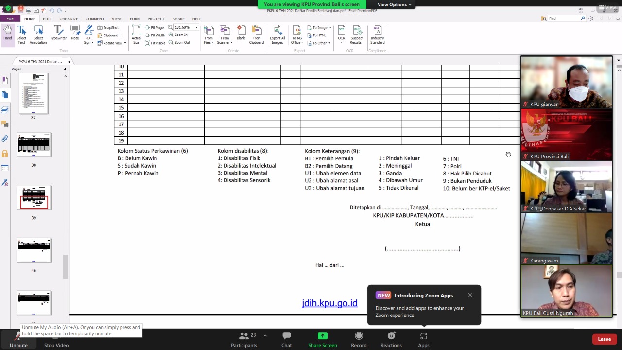 Komisi Pemilihan Umum (KPU) Kabupaten Gianyar mengikuti Rapat Koordinasi pemutakhiran Daftar Pemilih Berkelanjutan yang dilaksanakan secara daring pada hari Selasa (23/11/2021) dengan topik pembahasan mengenai Evaluasi Daftar Pemilih Berkelanjutan. Kegiatan ini dihadiri oleh Anggota KPU Kabupaten Gianyar Divisi Perencanaan dan Data, A.A Gde Agung Eka Putra didampingi oleh Kasubag Program dan Data beserta Operator Sidalih.