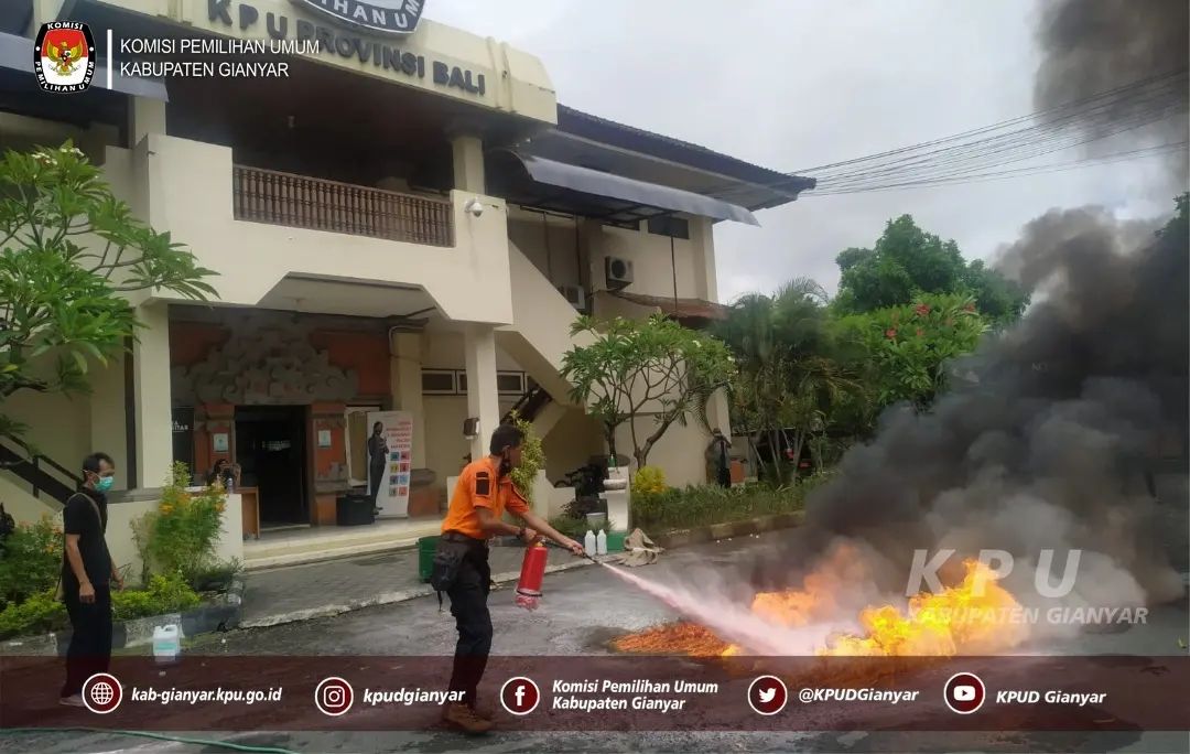 Gianyar, kab-gianyar.kpu.go.id - KPU Kabupaten Gianyar mengikuti kegiatan simulasi tanggap darurat bencana dan kebakaran yang dilaksanakan oleh KPU Provinsi Bali, Selasa (19/4/22). Kegiatan dihadiri oleh Kasubag Keuangan Umum dan Logistik dan Pengamanan Dalam/Petugas Keamanan KPU Kabupaten/Kota Se-Bali, dengan menghadirkan Narasumber dari BPBD Provinsi Bali.