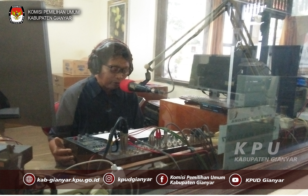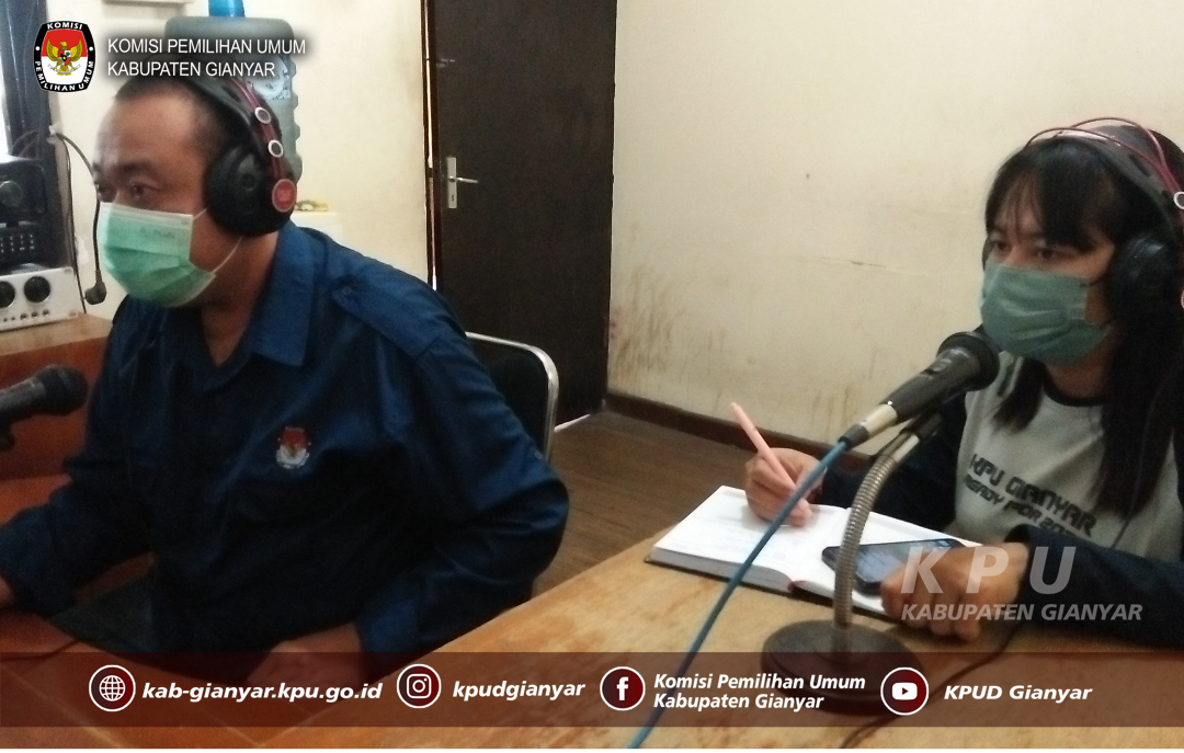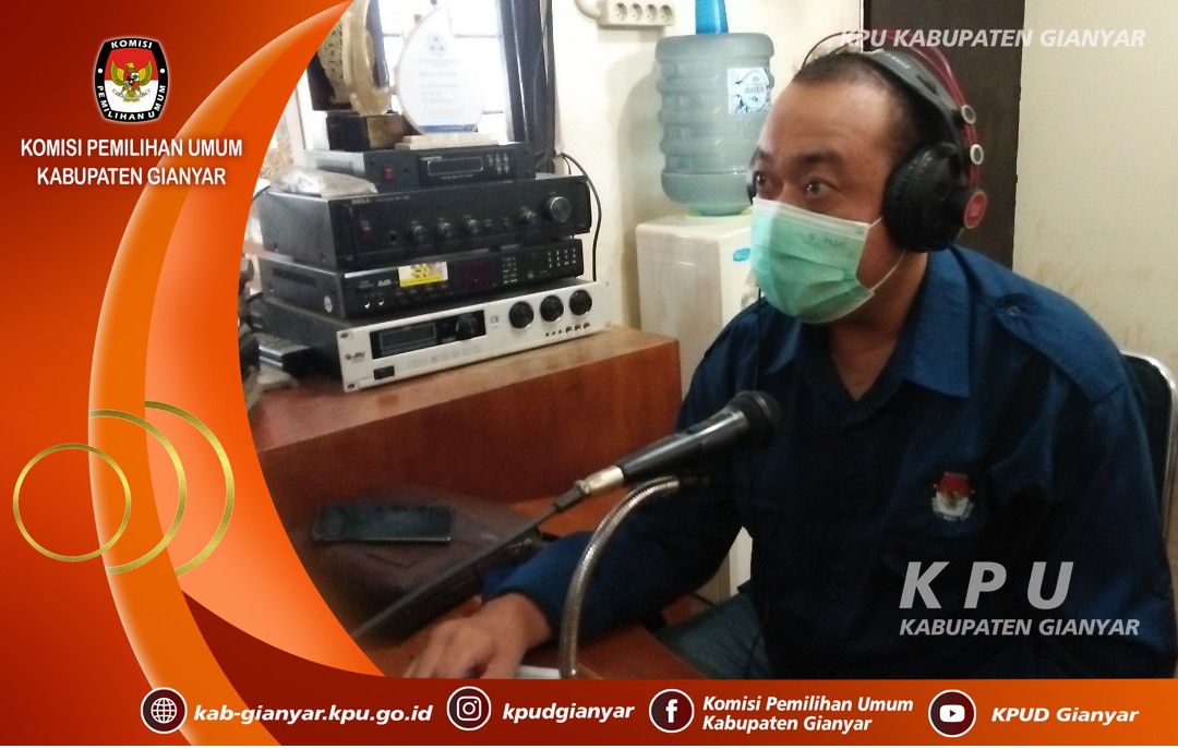 Dalam rangka persiapan menyongsong Pemilu Serentak tahun 2024, KPU Kabupaten Gianyar melaksanakan sosialisasi interaktif dengan mengisi acara Suluh Gianyar di Radio Gelora Gianyar pada hari Rabu (23/3) dengan topik pembahasan mengenai Memastikan Data Pemilih Menyongsong Pemilu Serentak 2024 yang dibawakan oleh Komisioner KPU Kabupaten Gianyar Divisi Perencanaan, Data, dan Informasi, A. A. Gde Agung Eka Putra dengan pemandu acara Bapak Wayan Suta.