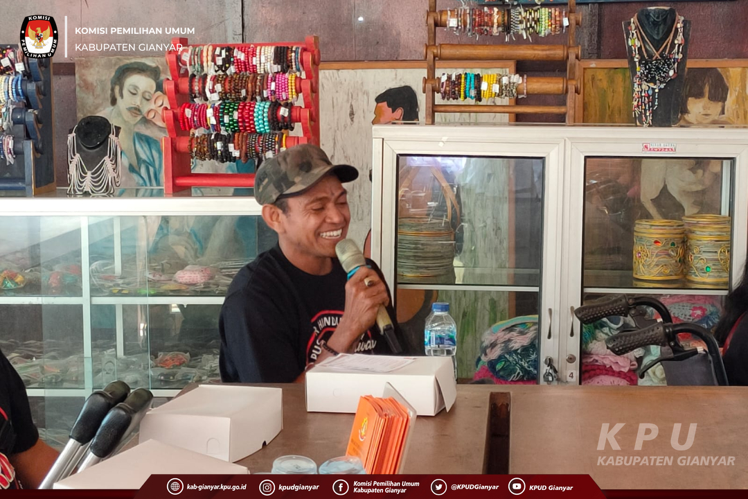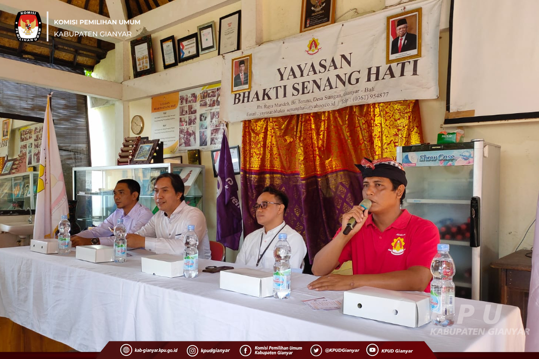 KPU Kabupaten Gianyar menggelar Sosialisasi Tahapan Pemilu Serentak tahun 2024 dengan menyasar pemilih Disabilitas di Yayasan Bhakti Senang Hati, Senin (4/7/2022). Kegiatan ini dihadiri oleh Anggota KPU Divisi Sosialisasi Pendidikan Pemilih, Partisipasi Masyarakat, dan SDM, I Komang Endra Gunawan, Kasubbag dan Staf Teknis dan Partisipasi Masyarakat.