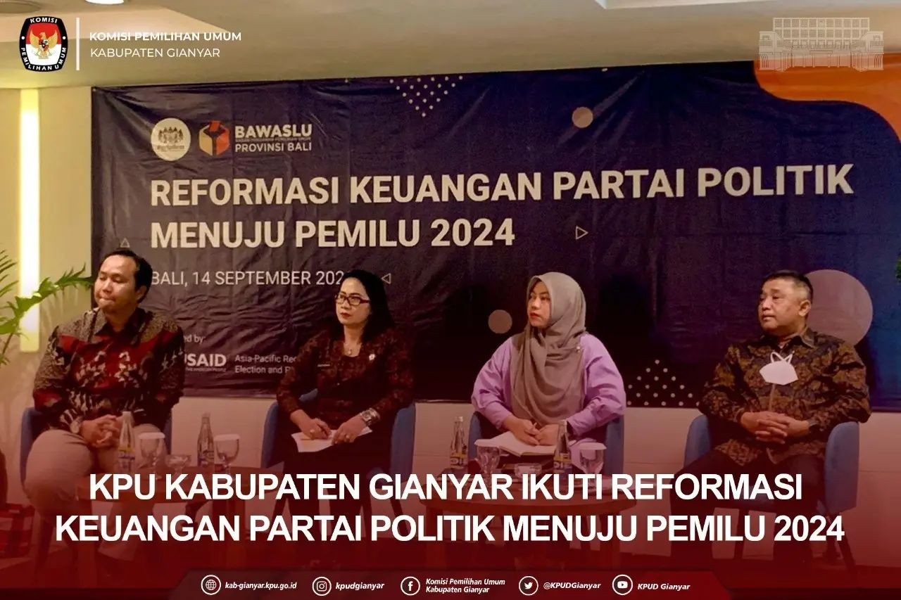 Denpasar, kab-gianyar.kpu.go.id - #TemanPemilih , Rabu (14/09/2022) Ketua KPU Gianyar I Putu Agus Tirta Suguna SH, menghadiri kegiatan Reformasi Keuangan Partai Politik menuju Pemilu 2024 bertempat di Hotel Haston Kuta Bali. Kegiatan ini di selenggarakan oleh Bawaslu Bali dan Perludem (perkumpulan untuk pemilu dan demokrasi ), dalam kegiatan ini menghadiri tiga orang narasumber yang dalam pemaparannya Titi Anggraini dari Perludem mendorong reformasi keuangan partai politik, khususnya pengaturan dana kampanye agar lebih transparan dan akuntabel. Menurutnya, pengalaman pemilu sebelumnya dana kampanye memang sudah diatur dalam undang-undang berupa pembatasan sumbangan perorangan maupun badan usaha, akan tetapi dalam hal penggunaanya terkadang tidak sesuai dengan realita di lapangan.