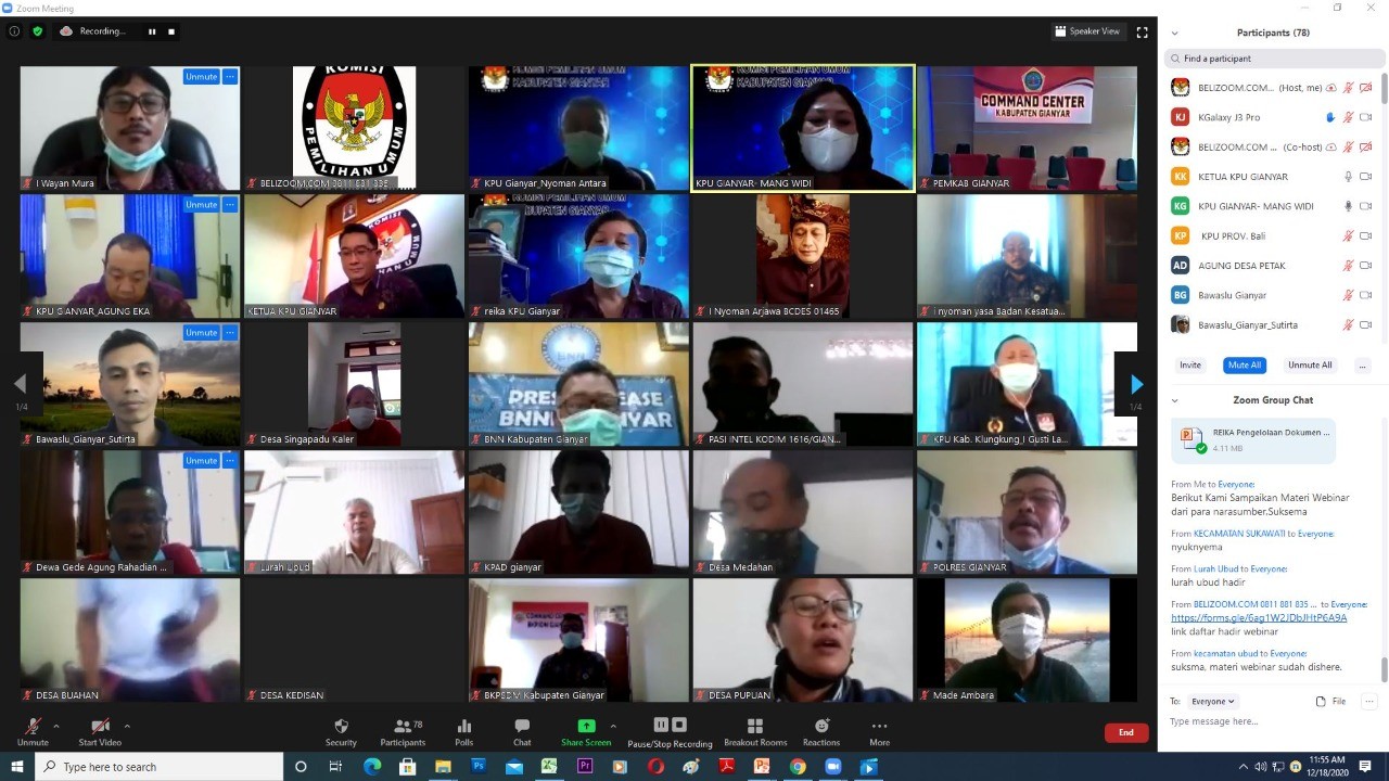KPU KABUPATEN GIANYAR (18/12/2020), Di tengah panyebaran Virus Corona (COVID 19) yang mengancam keselamatan umat manusia di seluruh dunia mengakibatkan semakin terbatasnya ruang dan waktu dalam melakukan aktifitas dan kreatifitas bagi semua pihak. Dampak dari pandemi Covid-19 juga mempengaruhi terhadap tingkat kinerja pada instansi pemerintah, termasuk pada kinerja KPU Kabupaten Gianyar akibat dari kebijakan rasionalisasi anggaran yang digunakan untuk tindakan pencegahan dan menanggulangi penyebaran covid-19. Dalam rangka melakukan evaluasi dan mempublikasikan kinerja KPU Kabupaten Gianyar di tengah pandemic Covid 19, pada hari Jumat (18/12/2020) dengan mengundang stakeholder terkait dan instansi pemerintah di Kabupaten Gianyar menggelar Webinar dengan tema “ Evaluasi dan Capaian Kinerja KPU Kabupaten Gianyar ditengah Pandemi Covid -19 Anggota KPU RI Dewa Kade Wiarsa Raka Sandi yang hadir pada kesempatan webinar tersebut memberikan apresiasi terhadap langkah KPU Kabupaten Gianyar melaksanakan webinar untuk menyampaikan kinerja yang telah berhasil dicapai sebagai bukti bahwa KPU tidak boleh berhenti berkerja tetapi harus tetap produktif dalam menjalankan tugas dan fungsinya sebagai penyelenggara Pemilu. Dengan digelarnya kegiatan webinar ini diharapkan dapat menjadi motivasi dalam meningkatkan kinerja ditengah pendemi ini. Pada kesempatan tersebut Dewa Raka Sandi menambahkan sehubungan dengan penyelenggaraan pemilihan serentak 2020 yang sudah berjalan dengan baik dan aman serta dengan capaian tingkat partisipasi pemilih yang cukup tinggi. Keberhasilan penyelenggaraan pemilihan serentak 2020 merupakan hasil peran aktif serta dukungan dari berbagai pihak serta seluruh lapisan masyarakat indonesia. Dalam pemaparan materi capaian kinerja yang dipandu oleh Ketua KPU Kabupaten Gianyar I Putu Agus Tirta Suguna, diawali pemaparan dari sekretaris KPU Kabupaten Gianyar I Nyoman Antara dengan materi Partisipasi Jajaran sektretariat dan Pengembangan SDM KPU Gianyar ditengah Covid-19, dilanjutkan oleh Divisi Hukum dan Pengawasan I Wayan Mura dengan materi Sistem Pengendalian Internal Pemerintah dimasa Pandemi Covid- 19 ditinjau dari segi kepatuhan internal, pada pemateri berikutnya oleh Divisi SDM dan Parmas I Komang Endra Gunawan dengan materi Sosialisasi dan Pendidikan Pemilih dimasa Pandemi Covid-19, kesempatan berikutnya penyampaian materi oleh Divisi Teknis Penyelenggara Ni Luh Putu Reika Chrisyanti dengan bahasan materi Pengelolaan Dokumen Kepemiluan, sebagai pemateri terakhir adalah Divisi Perencanaan, Progam dan Data Anak Agung Gede Agung Eka Putra dengan materi mengenai Mewujudkan Data Pemilih yang Palid dan Akurat dimasa Pandemi Covid-19. Setelah sesi pemaparan materi oleh sekretaris serta masing – masing anggota komisioner KPU Kabupaten Gianyar, acara dilanjutan dengan sesi tanggapan dan diskusi oleh peserta webinar terkait capaian kinerja yang telah disampaikan oleh KPU Kabupaten Gianyar. (pik)