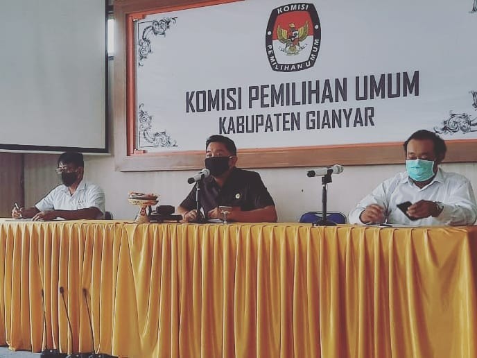KPU Kabupaten Gianyar melaksanakan rapat pleno rutin di ruang rapat KPU Kabupaten Gianyar, yang dipimpin oleh Anggota KPU Gianyar Divisi Teknis, Ni Luh Putu Reika Chrisyanti. Hadir dalam rapat yaitu Anggota KPU divisi Hukum dan Pengawasan, I Wayan Mura, Divisi Program dan Data AA Gede Agung Eka Putra, Divisi SDM, Sosialisasi dan Parmas I Komang Endra Gunawan, Sekretaris I Nyoman Antara, Kasubag dan staf sekretariat KPU Kabupaten Gianyar, pada hari Selasa tanggal 21/7/2020. Rapat pleno yang dilaksanakan dengan tetap mengikuti aturan jaga jarak yang aman (physical distance) bagi peserta rapat kali ini membahas agenda rencana kegiatan sosialisasi pendidikan pemilih di bulan Juli dan Agustus. Dengan masih merebaknya penularan covid19, sosialisasi ke segmen pemilih pemula atau para siswa SMU masih belum bisa dilaksanakan, sehingga kegiatan akan dipusatkan ke segmen lain yaitu penyandang disabilitas, organisasi kepemudaan, dan perempuan. (kr)
