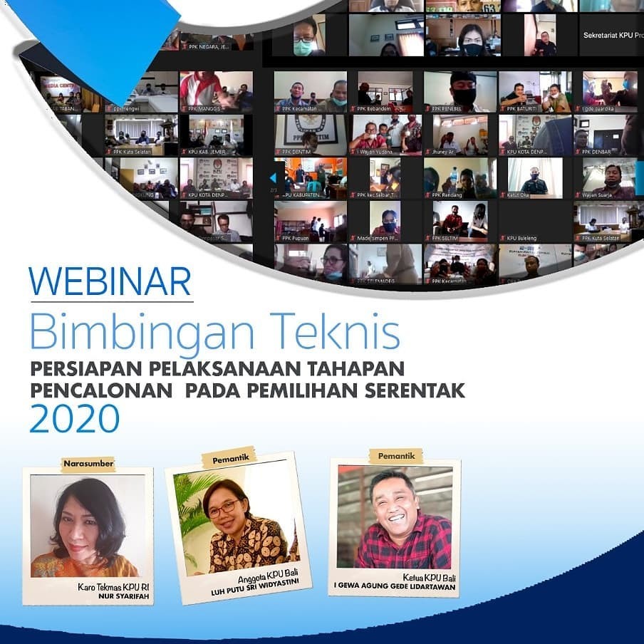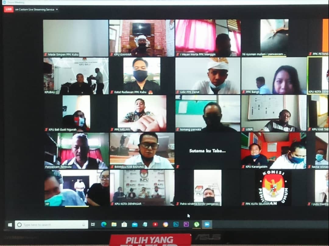 Seiring dengan bergulirnya tahapan pilkada serentak tgl 9 Desember 2020 di 6 Kabupaten/ Kota, dimana proses pengajuan bakal pasangan calon merupakan salah satu tahapan terpenting yang harus dipersiapkan dengan matang oleh KPU Kab/ Kota Penyelenggara Pilkada. Atas dasar tersebut pada hari Jumat, 3/7 KPU Provinsi Bali memfasilitasi webinar bimtek dengan tema Persiapan Pelaksanaan Tahapan Pencalonan pada Pemilihan Serentak Tahun 2020. Bimtek dihadiri oleh divisi teknis dan hukum seluruh KPU Kab/Kota se Bali. Pemateri sekaligus sebagai narasumber pada kesempatan kali ini adalah Nur Syarifah, Kepala Biro Teknis dan Hupmas KPU RI dan dibuka oleh ketua KPU Provinsi Bali I Dewa Agung Gede Lidartawan. Dalam sambutannya, I Dewa Agung Gede Lidartawan mengharapkan dengan diselenggarakannya webinar ini KPU Kab/ Kota bisa memiliki pemahaman yang sama terhadap segala permasalahan yang dihadapi dalam tahapan pencalonan. Sementara itu, Luh Putu Sri Widyastini selaku komisoner divisi teknis KPU Provinsi Bali, juga menyampaikan beberapa hal terkait kesiapan KPU Kab/Kota agar lebih dini melakukan persiapan dan koordinasi dengan partai politik dan juga pihak terkait lainnya agar bisa mengantisipasi permasalahan yang mungkin timbul saat tahapan berjalan. Lebih lanjut dalam pemaparannya Nur Syarifah selaku narasumber lebih menekankan pada proses pencalonan yang diusulkan oleh partai politik sehubungan dengan tidak adanya paslon dari perseorangan yang mendaftar di Bali. Nur Syarifah mengingatkan agar KPU Kab/Kota penyelenggara pilkada serentak segera melakukan sosialisasi kepada Parpol setelah juknis tentang pencalonan diturunkan oleh KPU RI, terutama terkait persyaratan calon yang akan diusung dan persyaratan yang harus dipenuhi dalam pengajuan bakal paslon. Bimtek dilanjutkan dengan sesi tanya jawab dari para peserta sebelum akhirnya ditutup oleh ketua KPU Provinsi Bali. (Rei/Kr)