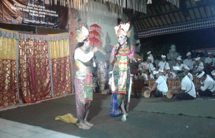 www.kpu-gianyarkab.go.id, I Gianyar Guna tingkatkan partisipasi pemilih diatas 80 persen di Kabupaten Gianyar, dalam perhelatan pemilihan Gubernur dan Wakil Gubernur Bali, Bupati dan Wakil Bupati Kabupaten Gianyar 2018 pada 27 Juni 2018 mendatang. Maka, sampai saat ini KPU Kabupaten Gianyar tetap gencar dan semangat laksanakan tahapan sosialisasi ketengah-tengah masyarakat mulai dari tingkat Banjar, Desa, Kecamatan sampai ke Kabupaten. Pelaksanaan sosialisasi dilaksanakan dengan pementasan seni, melibatkan beberapa grup lawak dan Bondres di Kabupaten Gianyar. Yang dalam beberapa kesempatan pelaksanaan sosialisasi pentas seni, dihadiri langsung oleh Ketua KPU Kabupaten Gianyar, Anak Agung Gde Putra, SH, MH serta sempat juga dihadiri oleh Kapolsek Desa Tegalalang dipelaksanaan di Desa setempat. Hal tersebut disampaikan, Divisi Sosialisasi, Pendidikan Pemilihan dan Pengembangan SDM KPU Kabupaten Gianyar A.A. Istri Agung Darmawati, S. Sos, Rabu, 4 April 2018 di Kantor KPU Kabupaten Gianyar. "Adapun, beberapa Banjar di beberapa Desa di Gianyar telah dilaksanakan sosialisasi pentas seni. Dalam pelaksanaanya didampingi oleh perwakilan KPU Kabupaten Gianyar, baik itu PPK maupun PPS. Bahkan, ada yang langsung dihadiri oleh ketua KPU Kabupaten Gianyar," jelasnya Dirinya memaparkan, beberapa Banjar-banjar yang telah dilaksanakan pentas seni antara lain, Desa Batubulan, Desa Puhu Payangan, Bukian Payangan, Desa Keliki, Taro, Tegalalang Kabupaten Gianyar. "Sebagian besar dari beberapa kegiatan sosialisasi pentas seni, telah berjalan dengan lancar. Walaupun, sempat disalah satu pementasan misalnya, di Desa Tegalalang diguyur hujan, tetap saja PPK dan PPS di Desa tersebut semangat melaksanakannya," ujarnya. Menurut beliau, dari pengamatan sosialisasi dalam bentuk pentas seni. Sangat mendapat apresiasi positif dari seluruh masyarakat dimasing-masing pelaksanaan di desa-desa tersebut. "Sosialisasi dalam pentas seni ini, mendapat apresiasi positif dari masyarakat. Terutamanya yang berada di pedesaan, dengan tetap penyampaian materi sosialisasi diberikan oleh KPU Kabupaten Gianyar," paparnya. Istri Agung Darmawati menambahkan, untuk selanjutnya Kecamatan lain masih sedang diupayakan nantinya. Terutama di Desa-desa yang ada kegiatan atau acara piodalanya. "Mengingat waktunya juga, agar dalam pelaksanaan pentas seni tidak terjadi benturan jadwal dengan Kecamatan lainnya. Juga agar tidak juga terjadi benturan jadwal dengan pementasan grup lawak, atau bondres yang akan mengisi nantinya," pungkasnya. (aga/mc)