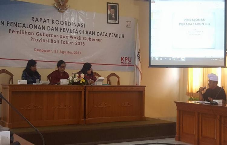 Pada hari Rabu, 30/8/2017 bertempat di Ruang Rapat KPU Provinsi Bali digelar Rapat Koordinasi (Rakor) Distribusi Dana Pemilihan Gubernur dan wakil gubernur (Pilgub) Bali Tahun 2018 mengundang KPU Kabupaten/Kota se Bali. Dalam rapat tersebut Anggota KPU Gianyar Divisi Keuangan dan Logistik Ngakan Nyoman Oka Sudaryana bersama Sekretaris KPU Gianyar, Pande Putu Sunarta hadir memenuhi undangan didampingi oleh Melgia Carolina Van Harling selaku Pejabat Pembuat Komitmen dan I Nyoman Juniari selaku Bendahara Pembantu Pengeluaran dalam Pilgub Bali 2018. Dalam rapat yang dipimpin oleh Divisi Keuangan Umum dan Logistik KPU Provinsi Bali I Wayan Jondra didampingi oleh Komisioner Kadek Wirati dan Ni Wayan Widhiasthini dibahas mengenai mekanisme distribusi dana Pilgub sesuai dengan rencana kebutuhan Pilgub masing-masing KPU Kabupaten/Kota. Melalui pembahasan per item kebutuhan anggaran dalam menunjang kegiatan tahapan Pilgub, diharapkan masing-masing satker dapat merencanakan kegiatan dengan lebih matang sehingga segala kegiatan yang sudah terencana dapat dilaksanakan dengan tepat waktu. Untuk itu KPU Bali mengingatkan kepada satker agar mengelola angagran dengan cermat dan selalu berpedoman pada peraturan yang berlaku. (kr)