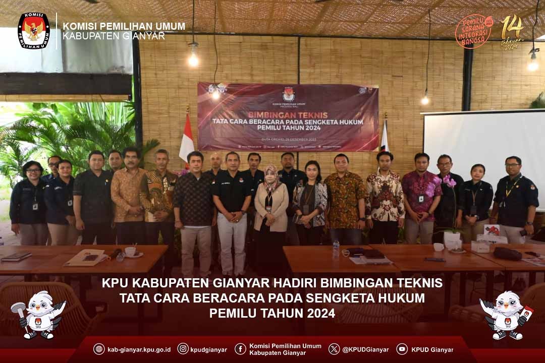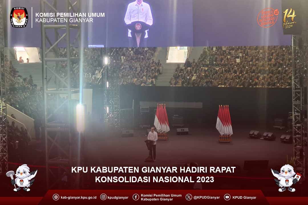 Ketua KPU Kabupaten Gianyar, seluruh Anggota KPU Kabupaten Gianyar, Sekretaris KPU Kabupaten Gianyar beserta jajaran Kepala Sub Bagian pada KPU Kabupaten Gianyar menghadiri Rapat Konsolidasi Nasional 2023 di Istora Senayan, DKI Jakarta, tanggal 29 - 31 Desember 2023.