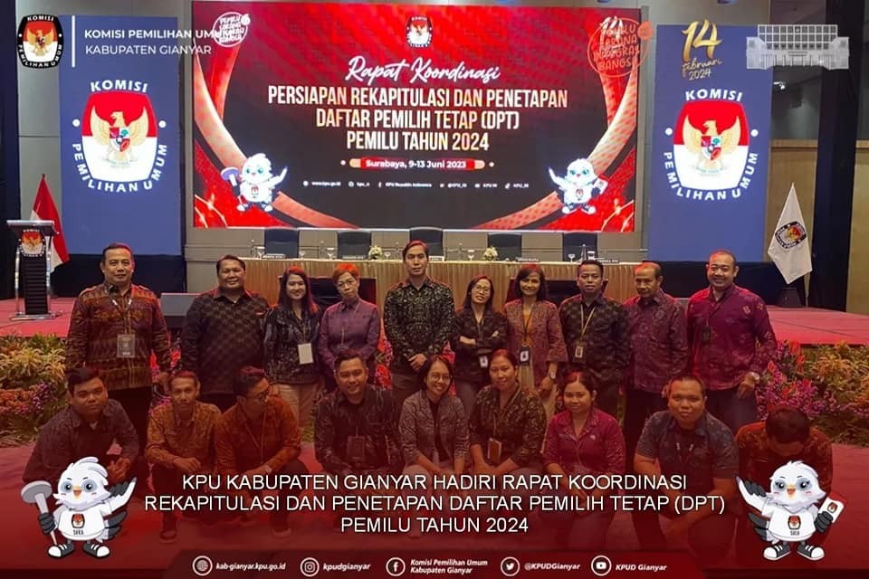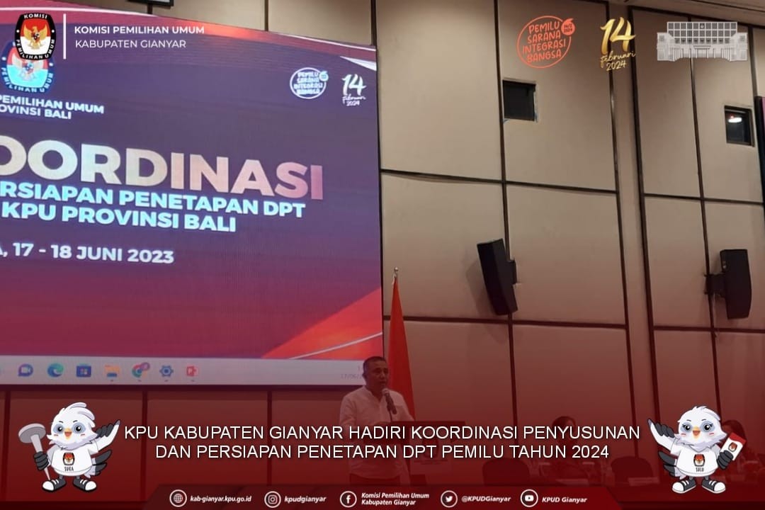 Kuta, kab-gianyar.kpu.go.id - #TemanPemilih #temanpemilih KPU Kabupaten Gianyar yang diwakili oleh Anggota KPU Kabupaten Gianyar I Wayan Mura dan I Komang Endra Gunawan, Admin dan Operator Sidalih menghadiri Rapat Koordinasi Penyusunan dan Persiapan Penetapan DPT Pemilu 2024 bertempat di Hotel Aryaduta Kuta Bali pasa 17 - 18 Juni 2023. Acara dibuka oleh Ketua KPU Provinsi Bali, I Dewa Agung Gede Lidartawan yang dalam arahanya menyampaikan perjalanan pemutakhiran data pemilih sedang berada dipuncaknya mulai dari turunya DP4, Coklit, Penyusunan DPS, DPSHP, DPSHP Akhir dan diakhiri dengan Penetapan DPT nntinya pada tanggal 20 sd 21 Juni 2023. Harapanya Data Pemilih ini tidak dijadikan sengketa oleh Partai Politik karena kita di KPU sudah membuka ruang seluas-luas kepada Bawaslu,Partai Politik dan masyarakat dalam pemberian masukan dan tanggapan oleh karena itu DPT nantinya akan Akurat, Valid, Mutakhir dan Komperensif. Selanjutnya arahan dari Divisi Perencanaan Data Dan Informasi I Gusti Ngurah Agus Darmasanjaya yang menyampaikan bahwa dalam Pemutakhiran Data Pemilih saat ini regulasi sudah jelas karena penetapan DPT hanya sekali saja , oleh karena itu kita bekerja sesuai rule dan timeline agar semua penduduk yang memenuhi syarat sebagai pemilih dapat terdaftar, yang belum memenuhi syarat tidak didaftarkan, memperbaiki data invalid dan memastikan Pemilih tidak terdaftar lebih dari satu kali, dan mohon kepada Parpol juga mengawal proses Pemutakhiran Data Pemilih ini. Dilanjutkan dengan pemaparan materi secara panel dengan Narasumber pertama dari Dinas PMD dan Dukcapil Provinsi Bali, I Wayan Eka Wiyata tentang Kondisi Data Kependudukan dan Perkembagan Perekaman KTP Elektronik dan Narasumber kedua dari Kanwil KumHam Provinsi Bali Ida Bagus Ardana yang menyampaikan Rekapitulasi Daftar Pemilih Sementara pada Lapas dan Rutan di Wilayah Kementerian Hukum dan HAM Bali Terakhir terdapat pemaparan dari masing-masing KPU Kabupaten/Kota terkait Daftar Inventaris Masalah dan Tindak Lanjut Ekesekusi data Masukan Tanggapan dari Bawaslu dan Masyarakat, Eksekusi data ganda dan eksekusi data turunan dari Kemendagri dan KPU RI. (Ang) #KPUMelayani #PemiluSerentak2024