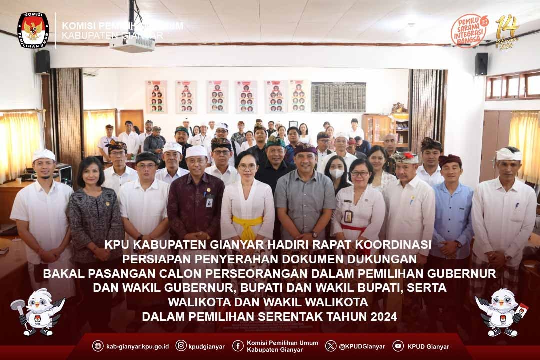 Denpasar, kab-gianyar.kpu.go.id - #TemanPemilih Launching Tahapan Pemilihan Gubernur dan Wakil Gubernur Bali Tahun 2024 yang dilaksanakan pada hari Minggu, 5 Mei 2024 di Ardha Candra – Taman Budaya Art Center, Denpasar dihadiri oleh Ketua dan Anggota Komisi Pemilihan Umum Kabupaten Gianyar beserta Sekretaris dan seluruh Kepala Sub Bagian Sekretariat Komisi Pemilihan Umum Kabupaten Gianyar.