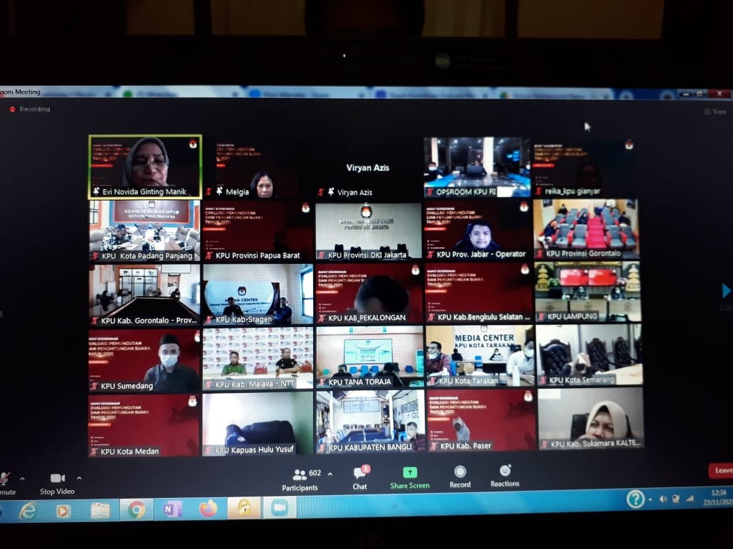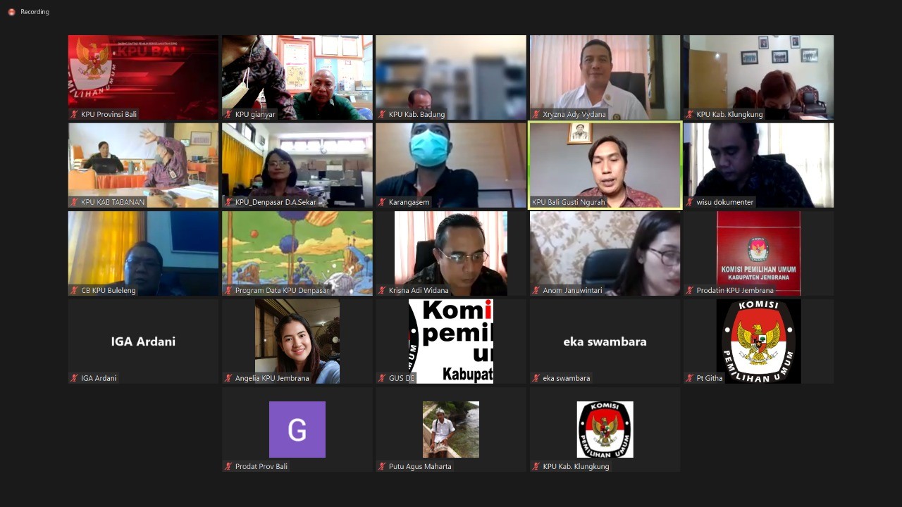 Komisi Pemilihan Umum (KPU) Kabupaten Gianyar mengikuti Rapat Koordinasi pemutakhiran Daftar Pemilih Berkelanjutan yang dilaksanakan secara daring pada hari Selasa (23/11/2021) dengan topik pembahasan mengenai Evaluasi Daftar Pemilih Berkelanjutan. Kegiatan ini dihadiri oleh Anggota KPU Kabupaten Gianyar Divisi Perencanaan dan Data, A.A Gde Agung Eka Putra didampingi oleh Kasubag Program dan Data beserta Operator Sidalih. Acara dibuka oleh Anggota KPU Provinsi Bali Divisi Perencanaan dan Data, I Gusti Ngurah Agus Darmasanjaya sekaligus menjadi moderator acara. Dalam sambutannya beliau menerangkan mengenai terbitnya PKPU No 6 tahun 2021 tentang Pemutakhiran Data Pemilih Berkelanjutan yang akan didiskusikan lebih lanjut. Acara diawali dengan penyampaian atau laporan dari masing-masing Satker KPU Kabupaten/Kota se-Bali mengenai perkembangan dari migrasi data di aplikasi Sidalih Offline dan perkembangan migrasi Website. Dalam kesempatan tersebut, masing-masing Satker menyampaikan bagaimana kendala yang ditemui dalam proses migrasi data ke aplikasi Sidalih Offline dan menyampaikan saran/masukan untuk perkembangan aplikasi Sidalih tersebut kedepannya. Rapat dilanjutkan dengan pembahasan terkait terbitnya PKPU No 6 tahun 2021 tentang Pemutakhiran Data Pemilih Berkelanjutan. I Gusti Ngurah Agus Darmasanjaya, mengharapkan pembahasan mengenai terbitnya peraturan tersebut dapat dipahami oleh masing-masing Satker dalam melaksanakan Pemutakhiran Data Pemilih. Beliau berpesan kepada masing-masing Satker agar tetap kompak dan menjalin kerjasama, baik secara internal atau secara eksternal demi kelangsungan Pemutakhiran Data Pemilih Berkelanjutan. (Yi/En)
