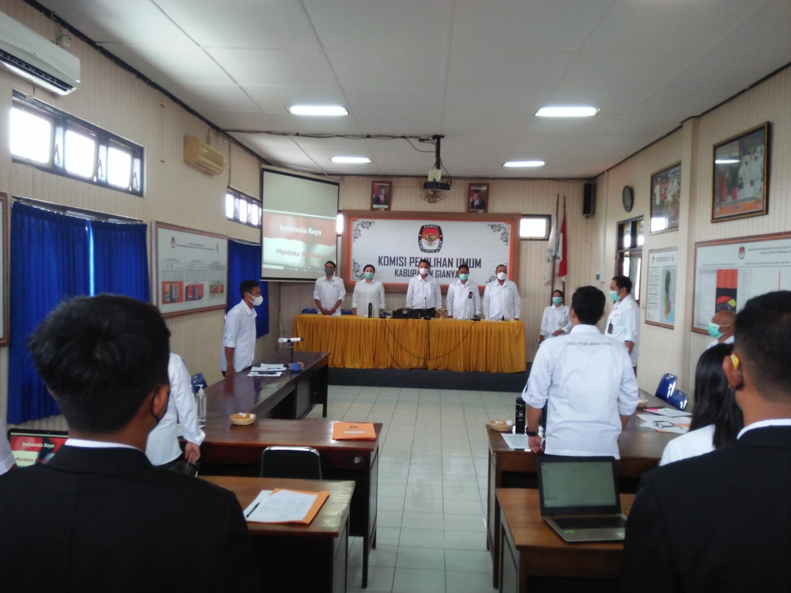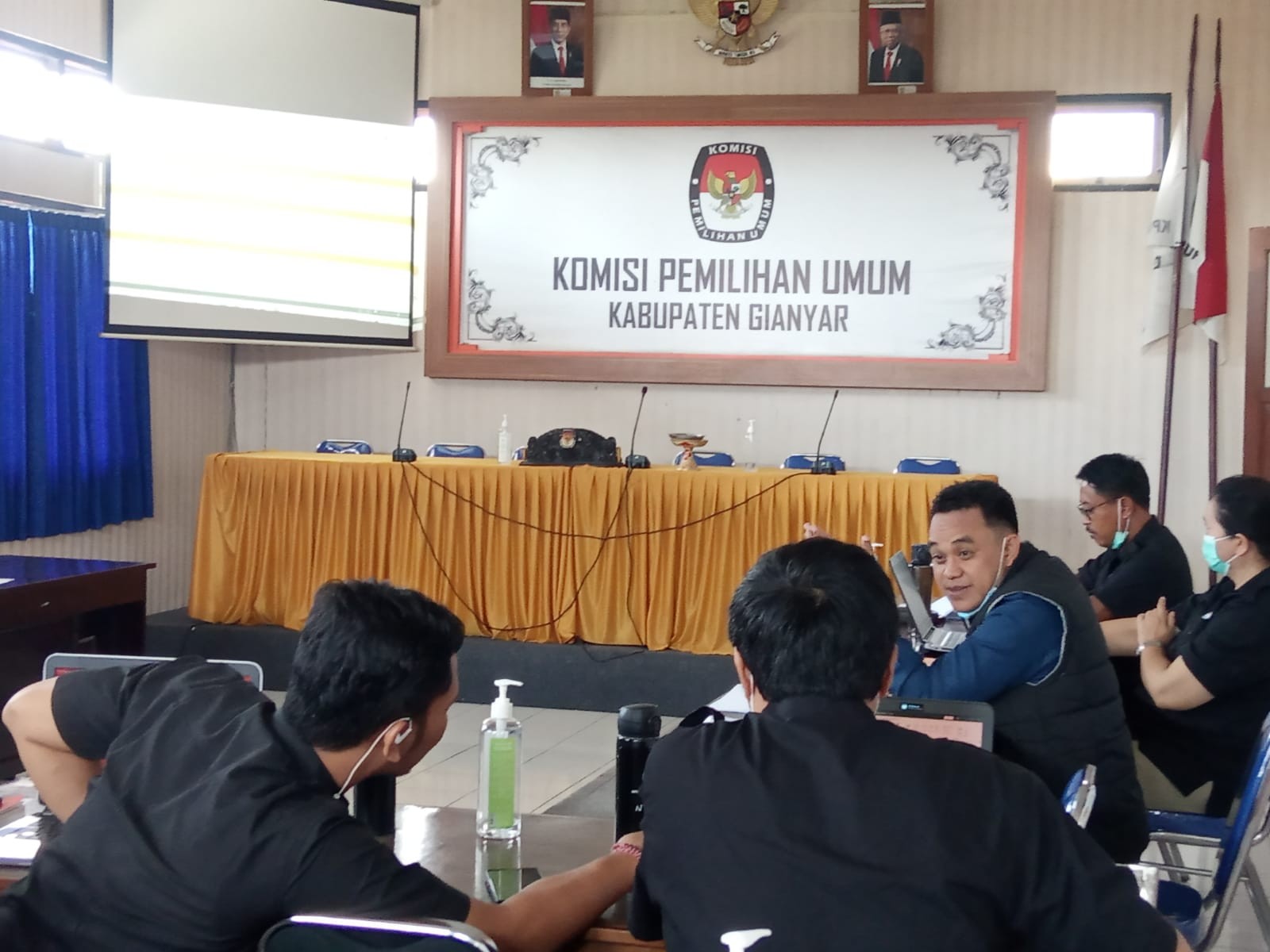 KPU Kabupaten Gianyar melaksanakan rapat pleno rutin di ruang rapat KPU Kabupaten Gianyar, yang dipimpin oleh Ketua KPU Gianyar I Putu Agus Tirta Suguna, SH. Diikuti oleh para Anggota, Sekretaris, para Kasubag, dan staf sekretariat KPU Kabupaten Gianyar, pada hari Senin tanggal 1/11/2021.