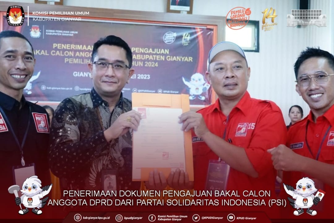 Gianyar, kab-gianyar.kpu.id - #TemanPemilih KPU Kabupaten Gianyar telah menerima dokumen pengajuan bakal calon anggota DPRD Kabupaten Gianyar dari Partai Garda Perubahan Indonesia (Garuda) pada Minggu (14/05/2023).