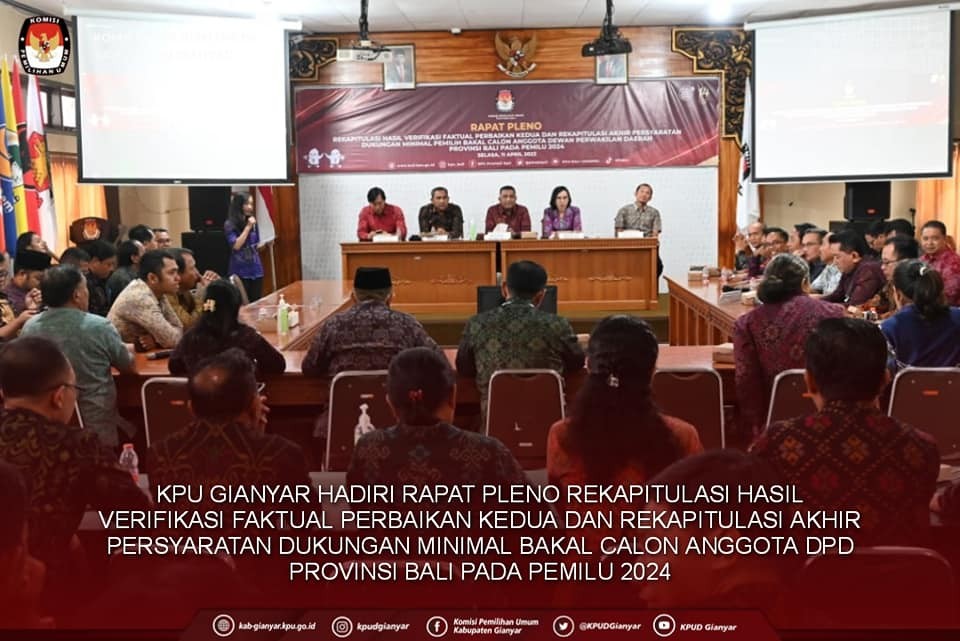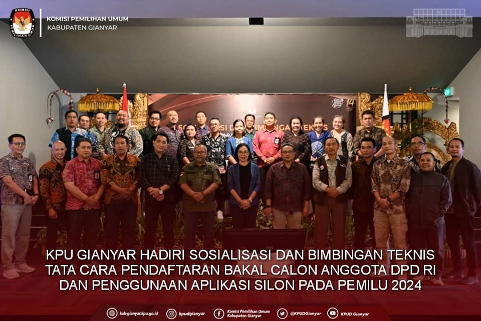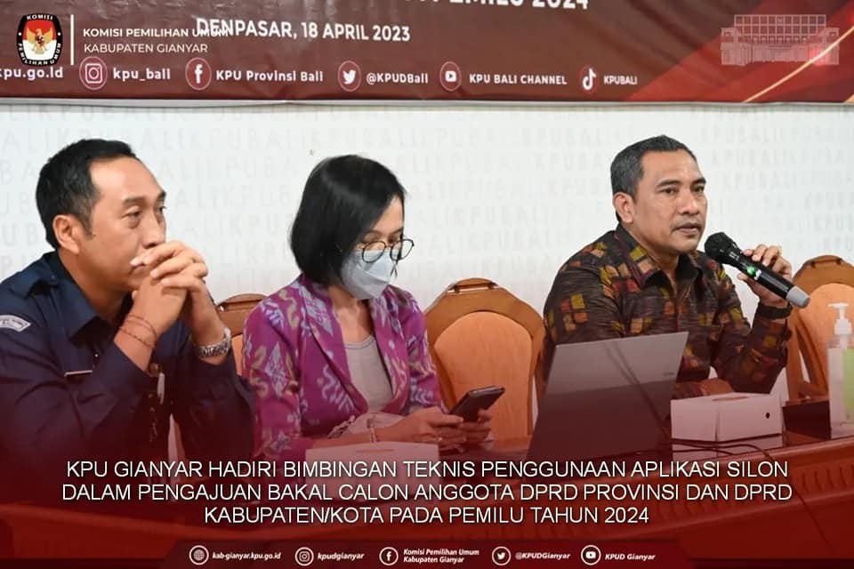 Denpasar, kab-gianyar.kpu.go.id - #temanpemilih Ketua, Divisi Teknis Penyelenggaraan, dan Admin SILON KPU Kabupaten Gianyar menghadiri Sosialisasi dan Bimbingan Teknis Tata Cara Pendaftaran Bakal Calon DPD Provinsi Bali dan Penggunaan Aplikasi SILON pada Pemilu Tahun 2024, bertempat di Prime Plaza Hotel Sanur Minggu (16/4/2023). Sosialisasi dibuka oleh Ketua KPU Provinsi Bali, I Dewa Agung Gede Lidartawan yang menyampaikan bahwa sosialisasi ini dilaksanakan untuk pemahaman bersama guna mempermudah proses pencalonan. Nantinya KPU sesuai tingkatannya akan membuka helpdesk untuk melayani bakal calon selama tahapan berlangsung. Dilanjutkan dengan pemaparan materi Sosialisasi Tahapan Pendaftaran Persyaratan Calon Anggota Dewan Perwakilan Daerah dalam Pemilu Tahun 2024 oleh Divisi Teknis Penyelenggaraan KPU Provinsi Bali, Luh Putu Sri Widyastini yang dimoderatori oleh Kepala Bagian Hukum dan SDM, Teknis Penyelenggaraan Pemilu, Partisipasi dan Hubungan Masyarakat KPU Provinsi Bali sekaligus memberikan bimbingan teknis tata cara penggunaan aplikasi SILON Anggota DPD Provinsi Bali. Hadir dalam kegiatan tersebut Pimpinan KPU Provinsi Bali dan Bawaslu Provinsi Bali, Kelompok Kerja Pencalonan pada KPU Provinsi Bali, LO calon anggota DPD Provinsi Bali, Ketua dan Divisi Teknis Penyelenggaraan, serta Admin SILON KPU kabupaten/Kota se-Bali. Pada sesi kedua dilanjutkan dengan Bimbingan Teknis Pelaksanaan Pencalonan Anggota DPRD Provinsi, dan DPRD Kabupaten/Kota serta Gambaran Umum Tata Cara Penggunaan Aplikasi SILON Anggota DPRD yang dipandu oleh Admin SILON KPU Provinsi Bali, I Wayan Gede Budiartha. (Skm) #KPUMelayani #PemiluSerentak2024 #KPUGianyar