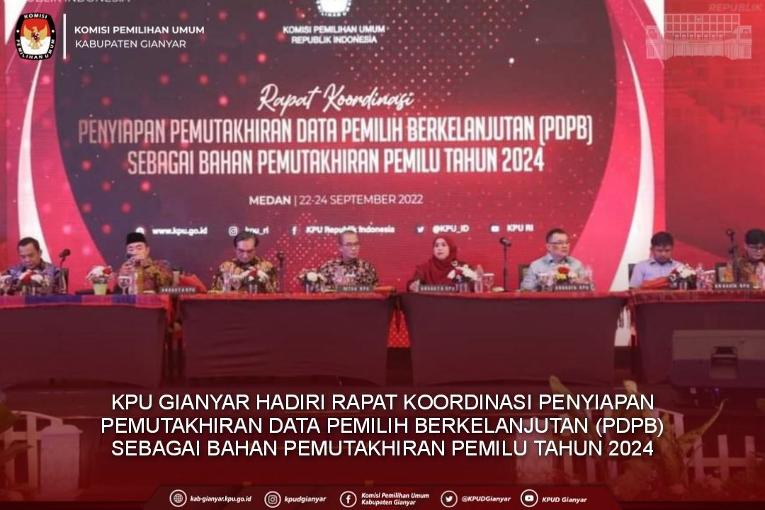 Medan, kab-gianyar.kpu.go.id - #TemanPemilih KPU Kabupaten Gianyar menghadiri Rapat Koordinasi Penyiapan Pemutakhiran Data Pemilih Berkelanjutan sebagai Dasar Pemutakhiran Data Pemilih Tahun 2024 yang digelar oleh KPU RI pada 22-24 September 2022. Kegiatan ini mengundang mengundang Divisi dan Kepala Bagian Perencanaan, Data, dan Informasi KPU provinsi se-Indonesia dan Kepala Sub Bagian Perencanaan, Data, dan Informasi KPU Kabupaten/Kota se-Indonesia.