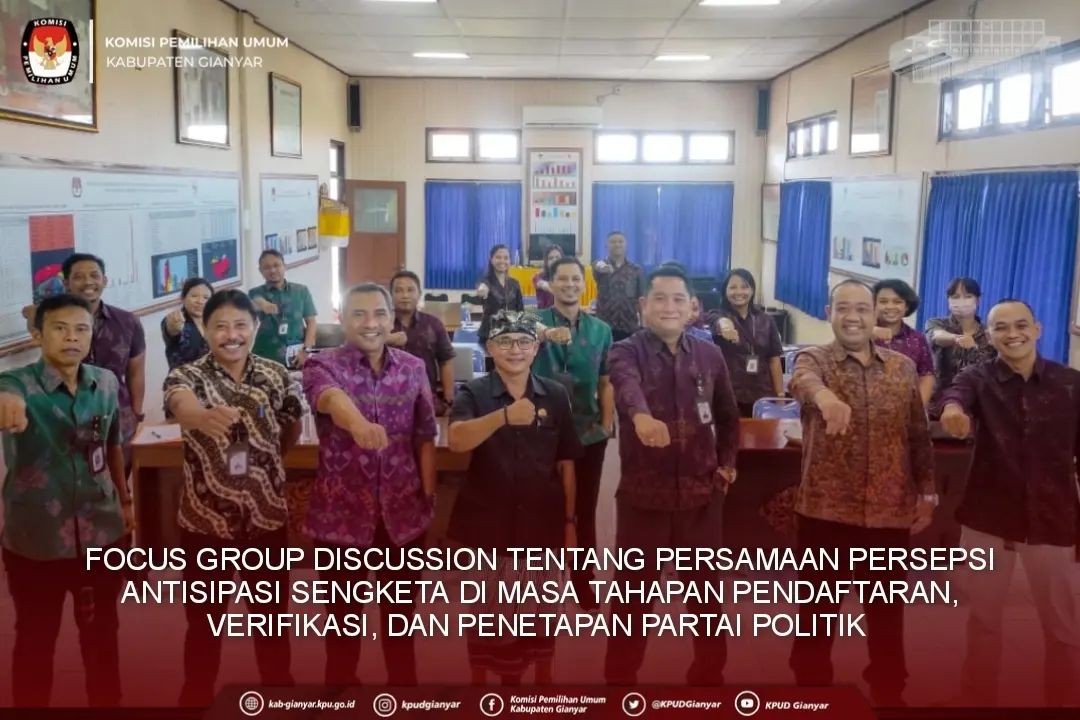 Gianyar, kab-gianyar.kpu.go.id - #TemanPemilih , Memasuki tahap verifikasi administrasi Partai Politik Peserta Pemilu Anggota DPR dan DPRD tahun 2024 , KPU Kabupaten Gianyar melaksanakan Rapat Koordinasi Antisipasi Permasalahan Hukum dalam Tahapan Pendaftaran, Verifikasi dan Penetapan Partai Politik Peserta Pemilu Anggota DPR dan DPRD tahun 2024, bertempat di ruang rapat KPU Kabupaten Gianyar pada Selasa (16/08/2022). Kegiatan dibuka oleh Ketua KPU Kabupaten Gianyar, I Putu Agus Tirta Suguna beserta anggota, diikuti oleh Sekretaris, Kasubbag dan staf sekretariat KPU Kabupaten Gianyar. Rapat koordinasi yang dikemas dengan metode Focus Group Discussion yang dibuka oleh Ketua KPU Kabupaten Gianyar ini turut mengundang Ketua Bawaslu Kabupaten Gianyar, I Wayan Hartawan serta dihadiri oleh Divisi Hukum dan Pengawasan KPU Provinsi Bali, Anak Agung Gede Raka Nakula sekaligus memberikan supervisi. Agus Tirta menyampaikan maksud dilaksanakannya kegiatan ini adalah untuk penyamaan presepsi atau pemahaman sebagai antisipasi sengketa di masa tahapan pendaftaran, verifikasi, dan penetapan partai politik. Lebih lanjut I Wayan Mura, Divisi Hukum dan Pengawasan KPU Kabupaten Gianyar menambahkan bahwa perlu dilakukan pemetaan lebih awal terhadap potensi permasalahan yang mungkin ditemukan pada masa tahapan verifikasi administrasi. Untuk itu petugas verifikator perlu bekerja dengan penuh kehati-hatian, sebab jika adanya sedikit kesalahan maka akan melalui alur panjang untuk diselesaikan. Peserta berdiskusi mengenai instrumen apa saja yang harus dilakukan verifikasi berpedoman pada Peraturam KPU Nomor 4 Tahun 2022 tentang Pendaftaran, Verifikasi dan Penetapan Partai Politik Peserta Pemilu Anggota Dewan perwakilan rakyat dan Dewan Perwakilan Rakyat Daerah. Memasuki materi pembahasan yang mengacu pada pasal 32 PKPU Nomor 4 tahun 2022, maka terdapat kesesuaian bahwa keanggotaan tersebut statusnya adalah belum memenuhi syarat sebagaimana disebutkan pada pasal 36 ayat (2). Hal tersebut memerlukan pembuktian melalui dokumen surat pernyataan dan surat keputusan pemberhentian. Sementara itu, Ketua Bawaslu Gianyar I Wayan Hartawan memberikan masukan mengenai hal-hal apa saja yang berpotensi menimbulkan permasalahan hukum baik dari kesiapan internal Partai politik maupun kendala-kendala lain yang ditemui menyangkut apliaksi maupun petugas verifikator. Pihaknya pun menyadari adanya keterbatasan personil dalam melakukan pengawasan, namun dengan sinergitas dan koordinasi yang baik antar sesama penyelenggara pemilu, diharapkan potensi masalah dapat dicegah sehingga pengawasan pelaksanaan tahapan pemilu berjalan sesuai ketentuan Perbawaslu. (Yi/Kr) #KPUMelayani #PemiluSerentak2024 #KPUGianyar