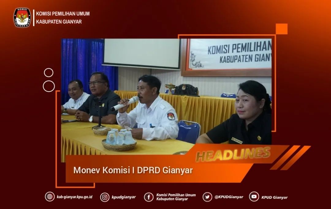 Ketua Komisi I, I Nyoman Amerthayasa didampingi oleh para Anggota, Tim Ahli, serta Kasubbag pada Komisi I DPRD Gianyar, menyatakan tujuan dilaksanakannya kegiatan ini adalah untuk mengetahui sejauh mana kesiapan KPU menuju Pemilu serentak Tahun 2024. Monev dilanjutkan dengan penyampaian kegiatan yang sudah dilaksanakan KPU seperti pelaksanaan daftar pemilih berkelanjutan, serta penyampaian kendala yang dihadapi oleh masing-masing Divisi KPU Kabupaten Gianyar.