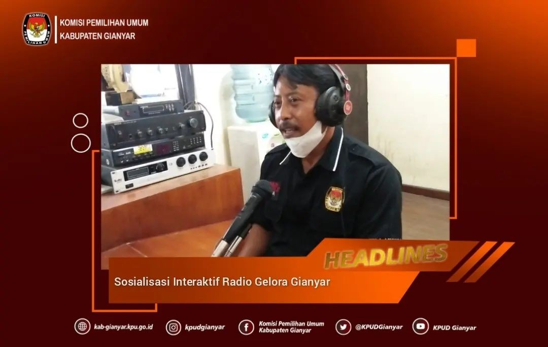 Gianyar, kab-gianyar.kpu.go.id - Dalam rangka menyongsong Pemilu Serentak 2024, KPU Kabupaten Gianyar melakukan sosialisasi interaktif di Radio Gelora Gianyar. Acara tersebut dipandu langsung oleh Pande Supartha dengan terlebih dahulu menyapa pendengar setia Radio Gelora Gianyar. Dalam kesempatan itu, I Wayan Mura, Anggota KPU Gianyar Divisi Hukum dan Pengawasan hadir sebagai narasumber dengan topik Kesiapan KPU Gianyar menyongsong Pemilu di tahun 2024. Membuka diskusi di siang itu, Wayan Mura menekankan bahwa pelaksanaan Pemilu akan berlangsung di tanggal 14 Februari 2024 dan dalam pelaksanaannya tidak ada penundaan terkait jadwal hari pemungutan suara, “Pemilu serentak di tahun 2024 tersebut adalah Pemilu untuk memilih Presiden dan Wakil Presiden, anggota DPR RI, DPD, dan DPRD.” Ujarnya Wayan Mura menyampaikan kepada masyarakat agar sadar terhadap administrasi kependudukan seperti mengurus E-KTP dan akta kematian bagi penduduk yang sudah meninggal dunia, sebab hal tersebut akan berpengaruh pada DPT. Di tengah perbincangan siang, hadir Bapak Dewa Raka dan Bapak Wiwit dengan memberikan tanggapan dan saran melalui telepon Radio Gelora serta tanggapan pendengar lainnya melalui sosial media Radio Gelora. Penutup acara, Wayan Mura berpesan kepada masyarakat untuk tertib administrasi kependudukan serta menggunakan hak pilihnya di Pemilu 2024 dan mengajak masyarakat untuk memastikan dirinya telah terdaftar dalam daftar pemilih melalui aplikasi Lindungi-Hakmu. (Yi)