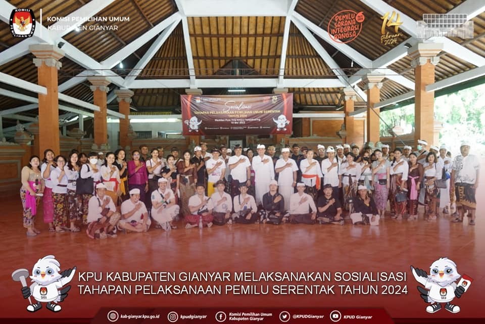 Gianyar, kab-gianyar.kpu.go.id - #TemanPemilih KPU Kabupaten Gianyar menggelar Serah Terima Bendera Kirab Pemilu 2024 pada Senin (31/07). KPU Kabupaten Gianyar menerima iring-iringan Kirab dari KPU Kabupaten Bangli di Alun-alun Kota Gianyar. Iring-iringan Kirab Kabupaten Bangli disambut dengan tarian hanoman dan tabuh gembyung dengan mengantarkan iring-iringan tersebut menuju tempat yang telah disediakan. Adapun bendera kirab dibawakan oleh tim paskibra Kabupaten Bangli dengan menyerahkan secara seremonial 18 bendera Partai Politik peserta Pemilu 2024 kepada tim paskibra Kabupaten Gianyar. Acara dibuka dengan tarian sambutan yaitu Tari Maskot Kabupaten Gianyar, Sekar Pucuk dan dilanjutkan dengan sambutan dari Plh. Ketua KPU Kabupaten Gianyar, I Komang Endra Gunawan. Dalam sambutan tersebut, Komang Endra memberikan sambutan selamat datang kepada undangan yang hadir dan menyampaikan rencana dari pelaksanaan sosialisasi hingga 6 hari kedepan di masing-masing kecamatan se-Kabupaten Gianyar. Acara kemudian dilanjutkan dengan Laporan Tim Pengawal Kirab Pemilu 2024 oleh Putu Gede Pertama Pujawan, Ketua KPU Kabupaten Bangli serta pembacaan sekaligus penandatangan Deklarasi Pemilu sebagai Sarana Integrasi Bangsa. Acara serah terima diselingi dengan berbagai hiburan dan pagelaran seni seperti tari barong dan tabuh gong yang mengiringi seluruh rangkaian acara. Pada penghujung acara, pelepasan bendera Kirab dilakukan oleh Paskibra Kabupaten Gianyar dengan memasang 18 bendera Partai Politik Peserta Pemilu 2024 pada mobil Kirab. Pelepasan mobil kirab turut diikuti dengan iring-iringan mobil Partai Politik. Turut hadir pada kegiatan ini, Ketua, anggota, sekretaris KPU Provinsi dan KPU Kabupaten/Kota se-Bali, Ketua Bawaslu Provinsi Bali dan Kabupaten Gianyar beserta Anggotanya, FORKOPIMDA, Lembaga Swadaya Masyarakat di Kabupaten Gianyar, Ketua/Perwakilan Partai Politik, dan Panitia Pemilihan Kecamatan (PPK) dan Panitia Pemungutan Suara (PPS) se-Kabupaten Gianyar. (Yi/ Dok. Humas KPUGyr) #KPUMelayani #PemiluSerentak2024 #KPUGianyar
